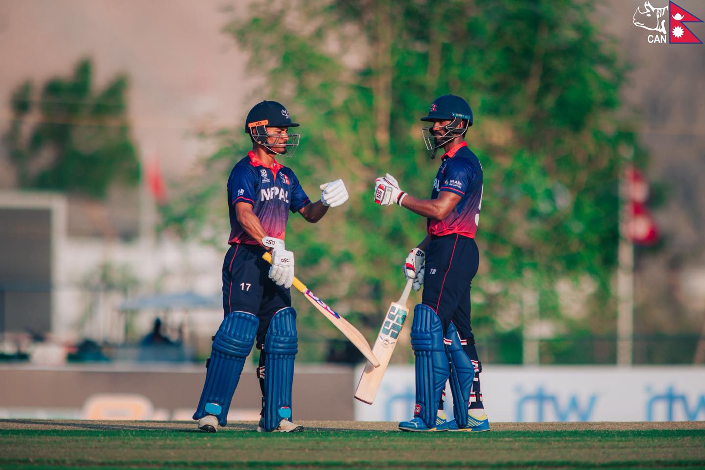 गुल्सन झाले २८ रन बनाउँदा कुशल भुर्तेलले २१ रनको योगदान गर्नुभयो । कप्तान रोहित पौडेलले १८ रन जोड्दा दीपेन्द्रसिंह ऐरीले १४ रन थप्नुभयो ।
