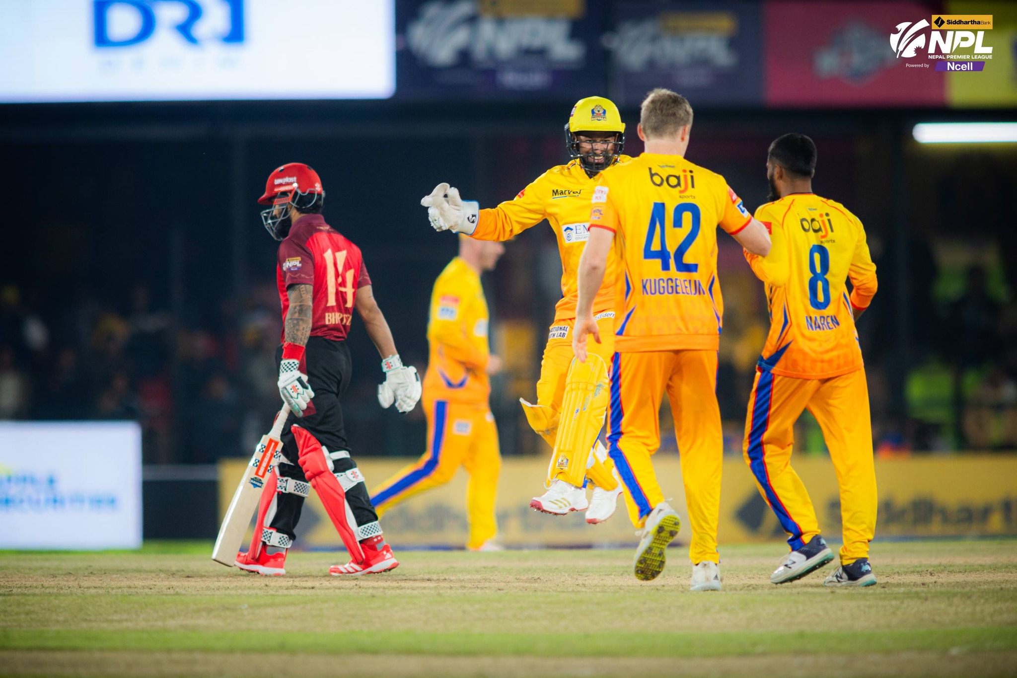 गत सिजन जनकपुर बोल्ट्सलाई उपाधि दिलाएका निसमले २५ बल खेल्दै २ चौका र ५ छक्कासहित ४७ रन बनाए । उनलाई रोयल्सका कप्तान दीपेन्द्रले लो बलमा बोल्ड गरे । सुमित बर्मा ६ र अभिषेक तिवारी १३ बलमा ३ रन बनाई आउट भए ।