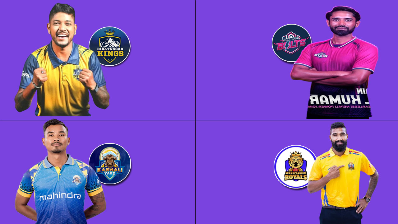 एनपीएलमा जनकपुर बोल्टस, सुदूरपश्चिम रोयल्स, कर्णाली याक्स, पोखरा एभेन्जर्स, विराटनगर किंग्स, चितवन राइनोज, काठमाण्डु गुर्खाज र लुम्बिनी लायन्स गरेर आठ फ्रेन्चाइज टोलीले प्रतिस्पर्धा गर्दैछन्।