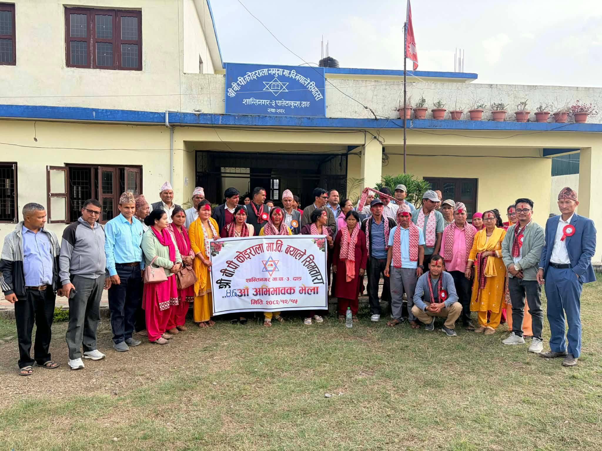 बिद्यालयका संस्थापक प्रधानाध्यापक नन्द लाल पाण्डेको अध्यक्षता एबं गाउँपालिकाका अध्यक्ष प्रमोद बस्नेतको प्रमुख आतिथ्यतामा भएको उक्त अभिभावक भेलामा पुर्ब ब्यबस्थापन समितिका अध्यक्ष हरु देब राज मल्ल, बुद्धि राम तिवारी र शसिधर के सि, त्यसै गरि वडा नम्बर ३ का अध्यक्ष मिन बहादुर के सि, बिद्यालयका प्रधानाध्यापक ठुम राज लामिछाने ,राष्ट्रिय स्वतन्त्र पार्टी शान्तिनगर का सचिब कर्णदिप देबकोटा, एमालेका प्रतिनिधि गंगाराम बस्यालले शुभकामना मन्तव्य राख्नु भएको थियो।